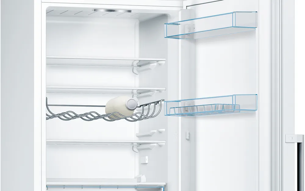 De Bosch KGV33VWEP Exclusiv Serie 4 koel-vriescombinatie combineert slimme functies met betrouwbare prestaties in een compact en stijlvol wit design. Met een hoogte van 176 cm en een breedte van 60 cm is dit apparaat ideaal voor kleinere keukens of huishoudens die behoefte hebben aan voldoende koel- en vriesruimte zonder in te leveren op gemak.